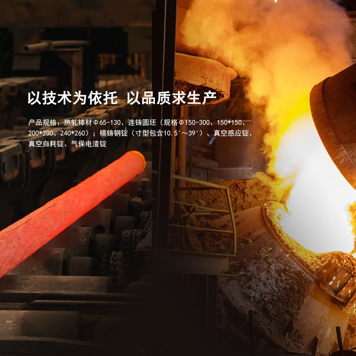 建成了以超高功率電弧爐、AOD爐、LF爐、VD爐、連鑄機(jī)、12噸美國康薩克真空感應(yīng)爐、15噸美國康薩克氣氛保護(hù)電渣爐,12噸德國ALD真空自耗爐進(jìn)口快鍛機(jī)高速棒材軋機(jī) 寬幅中厚板軋機(jī)、大口徑無縫管穿孔機(jī)、大口徑無縫管軋機(jī)、省級技術(shù)中心等設(shè)備組成的高品質(zhì)特種鋼生產(chǎn)線。...